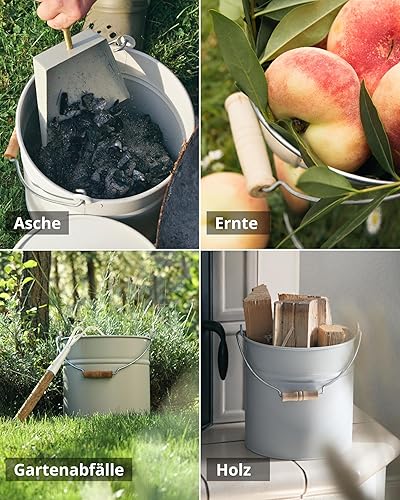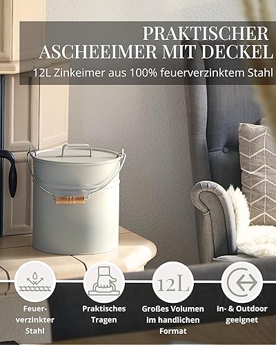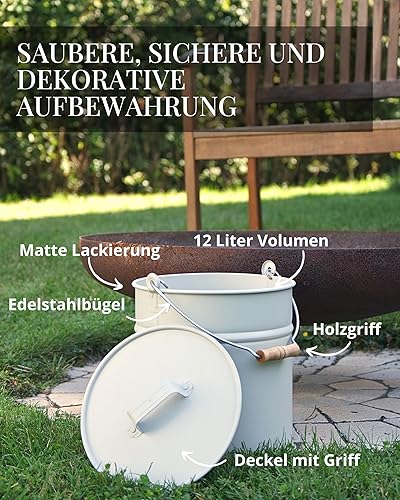 LIVLIG Eimer mit Deckel 10L, Zinkeimer, Ascheeimer mit Deckel, Metalleimer, Kaminzubehör, Blecheimer, Beige
