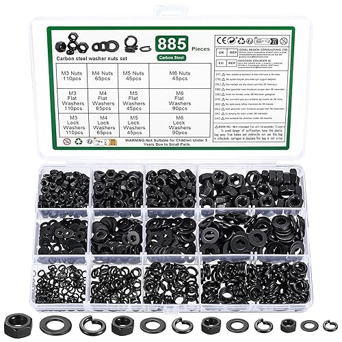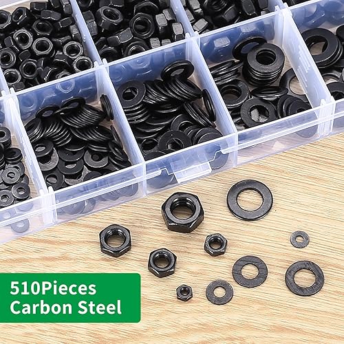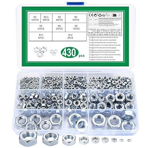 430 STK Sechskantmuttern, Sicherungsmuttern, Sechskant Muttern, Sechskantmutter Set, Stopmuttern für Schrauben Unterlegscheiben Gewindestangen, M2 M2.5 M3 M4 M5 M6 M8 M10 M12 Muttern, Schwarz
