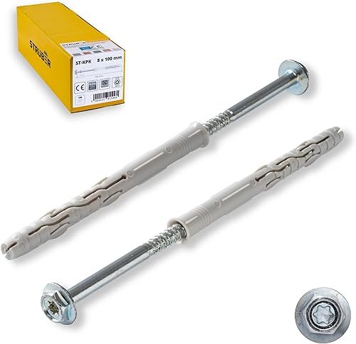 STRÜBER Rahmendübel mit Sechskantschraube & Scheibenkopf mit SW/TX-Buchse (10x200 mm / 25 Stück) Torx - Fensterrahmendübel - Langschaftdübel - Wandrahmenbefestigung - Nylondübel - ETA Zulassung