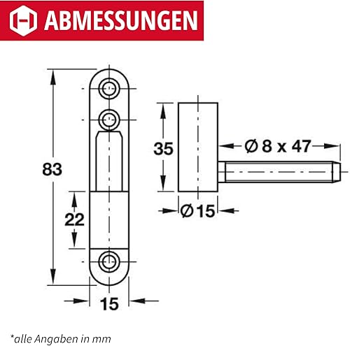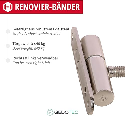 Gedotec Scharniere - Renovier-Bänder Türscharniere Metall verzinkt | 2 Stück Türbänder zum Aufschrauben - einbohren | MADE IN GERMANY | Türscharniere für Holztüren und Holztürstöcke | Einbohrbänder