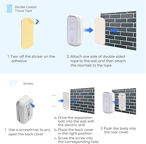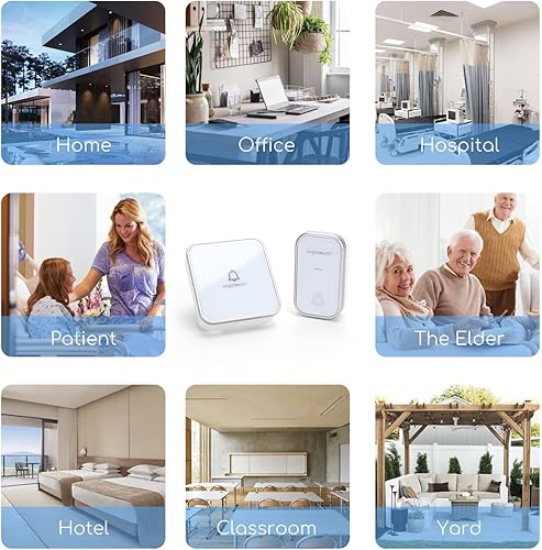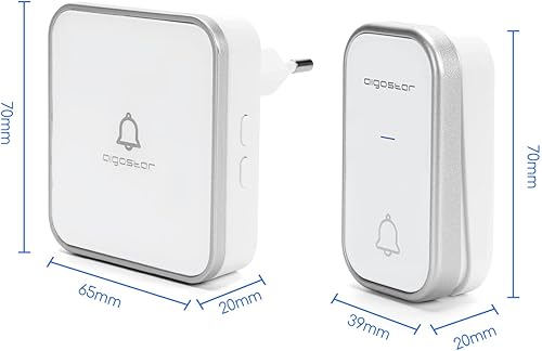 Aigostar Batterielose Funkklingel, Wasserdicht Türklingel Funk Set, Türklingel Funk mit LED Blinken, 36 Melodien, 3 Lautstärkestufen 150m Reichweite, Weiß