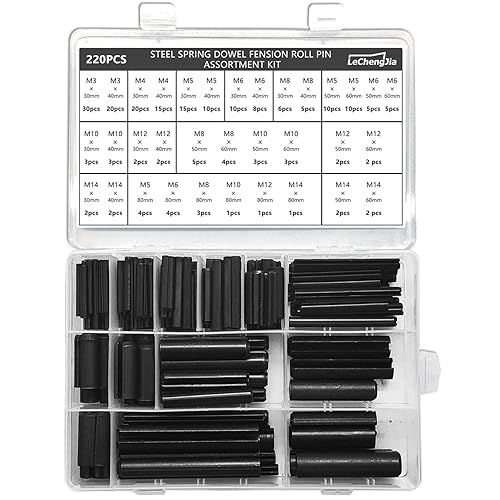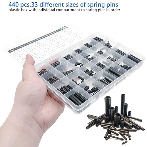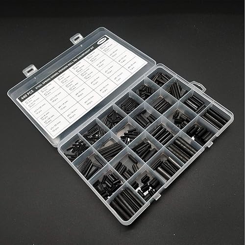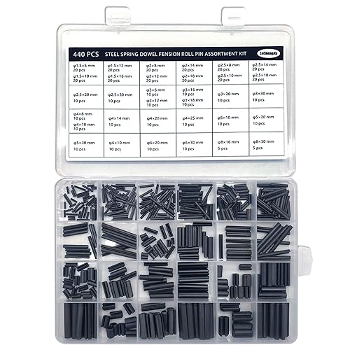 440 Stück Schlitz-Federstifte Rollstifte Sortiment Set Stahl Split Federdübel Spannstifte Metall Hardware Sortiment Kit Hohlfederstifte gemischte Größen M1.5 M2 M2.5 M3 M4 M5 M6 M8 schwarz mit Box