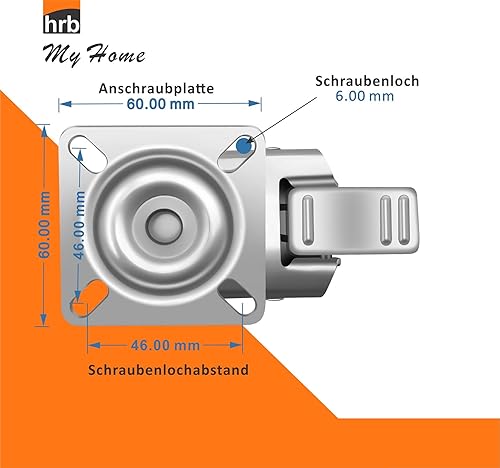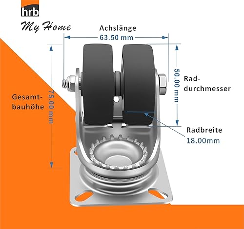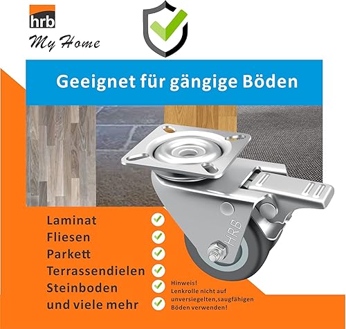 HRB Rollen mit Bremse 50 mm rasengeeignete Strandkorbrollen mit Bremse Tragkraft 400 kg nutzbar als Rollen für Möbel, Palettenmöbel oder als Transportrolle, hochwertige Industrierolle