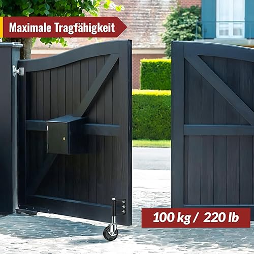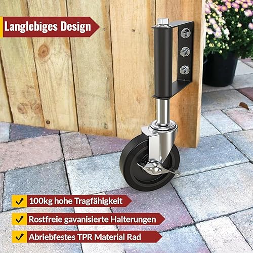 HOLKIE Torrolle 100mm mit Federbelastung, Rad mit Robuster Federung, Perfekt für Holztore, Zäune und Gartentor, Schwerlast-Torräder, Drehbare Torrolle, Belastbarkeit 100 Kg Schwarz