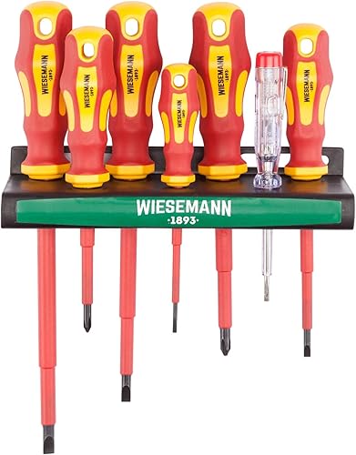 VDE Schraubenzieher Set 7tlg inkl. Spannungsprüfer Schlitz & PH von WIESEMANN 1893 I TÜV - GS geprüft I 80218
