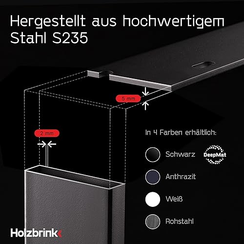 HOLZBRINK Tischbeine Metall Rohstahl mit Klarlack | Tischkufen/Tischgestell für Couchtisch, Esstisch, Schreibtisch, Sitzbank | 2 Stück Möbelfüße 40 x 43 cm