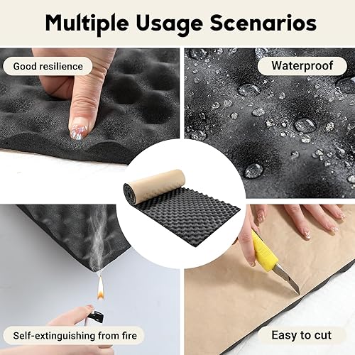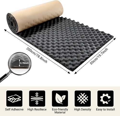 Putentfun Selbstklebend Dämmmatten 2cm 200 x 50 cm Dämmung Isolierung Kautschuk,Dämmmatte Auto Schallschutzmatte Isolierung Schallschutz,Raum Akustik Schaumstoff,Feuerfest, Wasserdicht