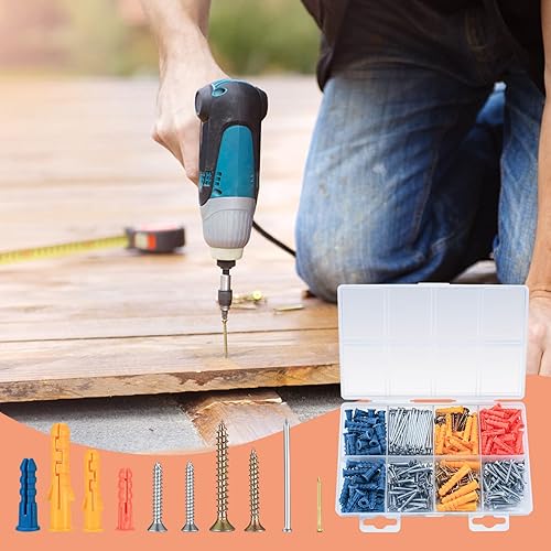 360 Stk Schrauben und Dübel Nägel Sortiment Kit, Holzschrauben Spreizdübel Kit, Spanplatte Schrauben, selbstschneidende Flachkopf Rohdübel und Schrauben und Nägel