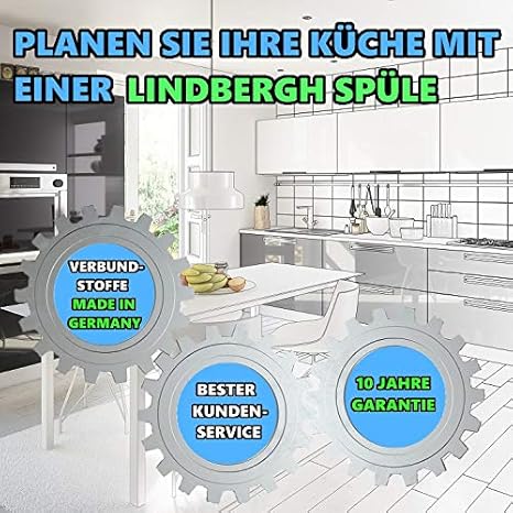 LINDBERGH® Granit Spüle 'COL' 490 x 455 mm + kompl. Siphon, Einbauspüle Küchenspüle Spülbecken - Verbundstoffe MADE IN GERMANY (Schwarz)
