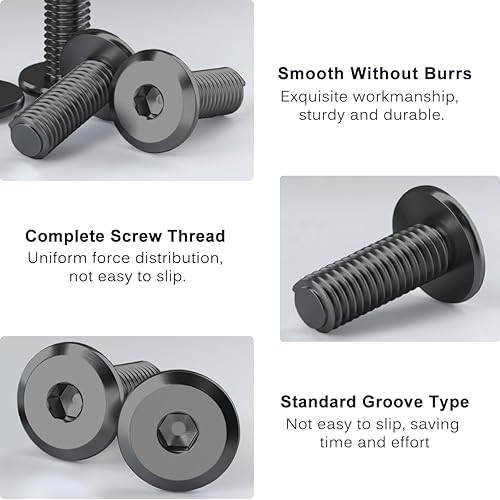 Drenky Schrauben Schwarz M6, Linsenkopfschrauben 20 Stück Edelstahl Schrauben M6x10mm Flachkopfschrauben Innensechskant Möbelschrauben für Möbelmontage, Holzbearbeitungsprojekte