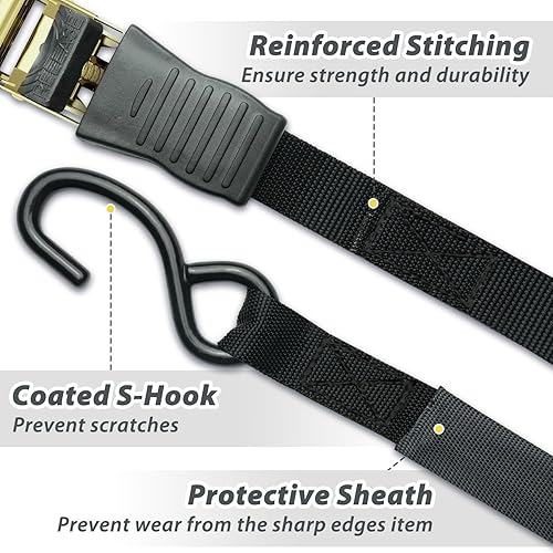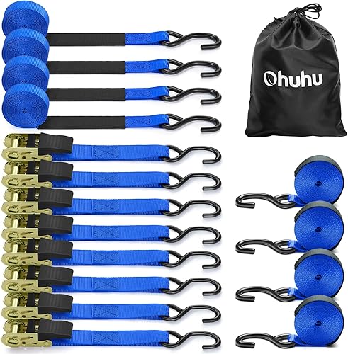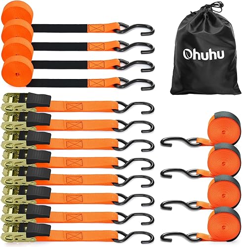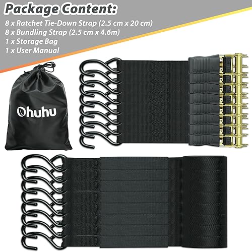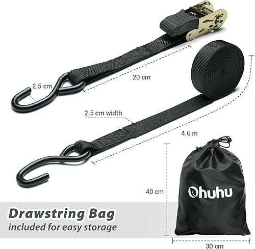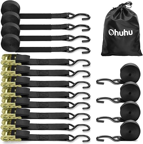 Ohuhu Spanngurte mit Ratsche 2 teilig zweiteilig 8 Stück, 680Kg 4,6m Zurrgurte Ratschengurt mit Haken, Befestigungsriemen Ratsche Zurrgurte Spanngurte mit Gummibeschichtete Metallgriffe, Schwarz