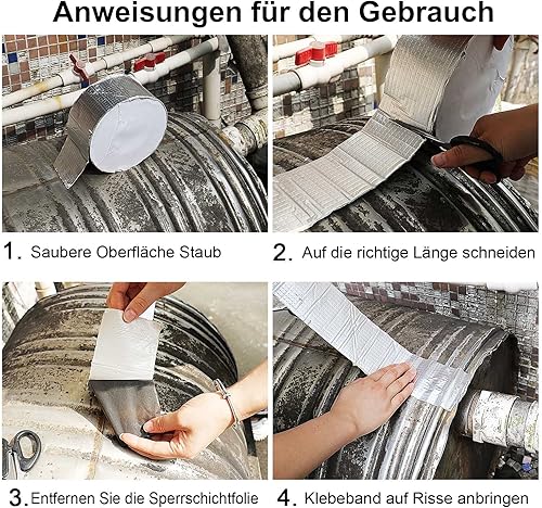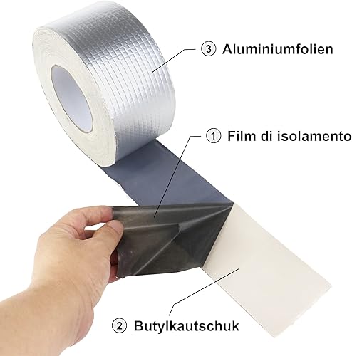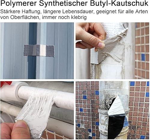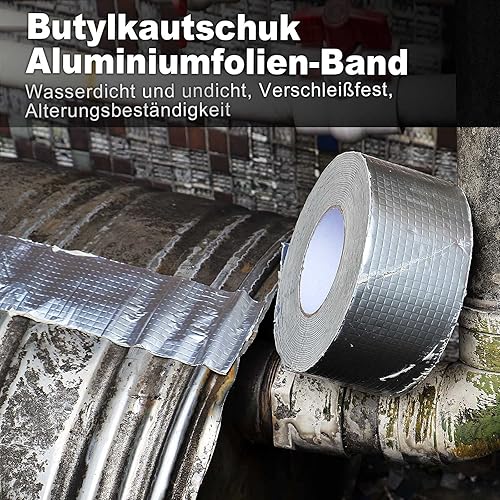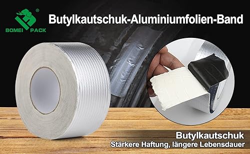 Aluminum Butylband Wasserdichtes Klebeband 100mmx10Mx1.5mm (T) Butyl Dichtungsband Alufolie Selbstklebend Reperaturband zum Abdichten und Befestigen für Lecks,BOMEI PACK