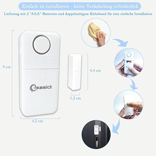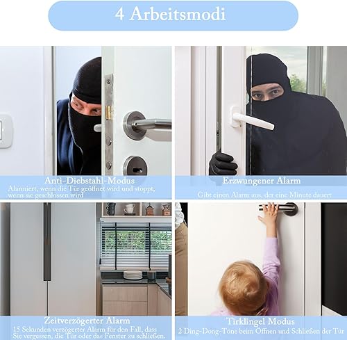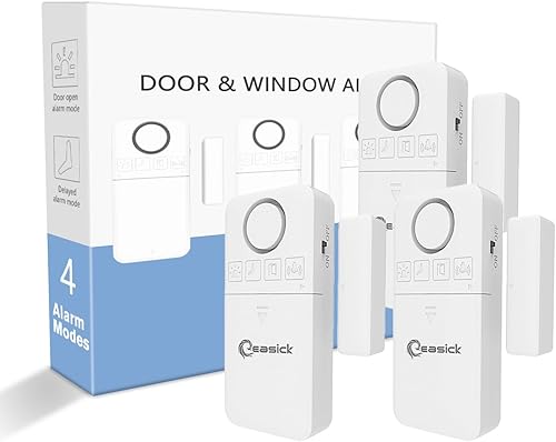 Easick Fensteralarm Türalarm mit Funktionsanzeige 130dB Tür/Fenstersensor Vier Alarm Modi,Türalarm mit Verzögerung,Drahtloser Einbruchschutz an Tür und Fensteralarm mit Batterien