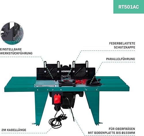 VONROC Frästisch für Oberfräse, Fräsmaschine Metall - Universal für alle Oberfräsen bis 155mm und 1800W, Tischfräse 870x335mm inkl. Tischverlängerung