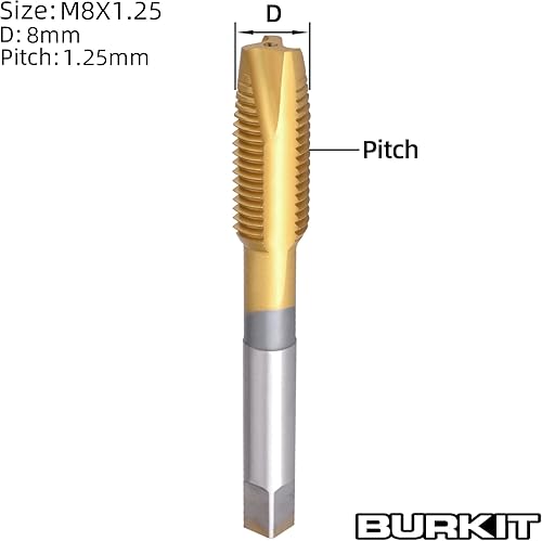 Burkit 2 Stück M8 Spiralspitze Gewindebohrer, HSS Titanbeschichtung M8 x 1,25 Spiralspitze Gewindebohrer