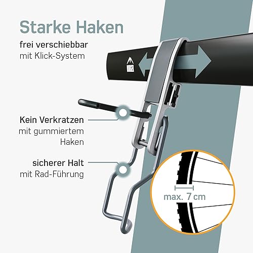 Borgen Fahrrad Wandhalterung Vertikal geeignet für alle Fahrräder, wie z.B. E Bike, Mountainbike, Rennrad, stufenlos verstellbar, Fahrradaufhängung Wand