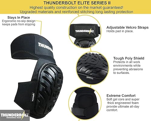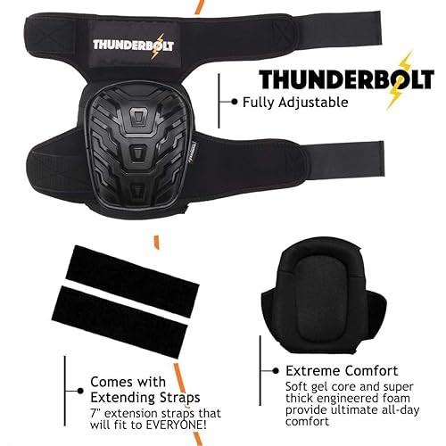 Thunderbolt Knieschoner Professioneller Knieschutz mit komfortablem Gelkissen Knieschoner Fliesenleger für Arbeit, Handwerk, Bodenbeläge Kniepolster Garten mit starken rutschfesten Gurten