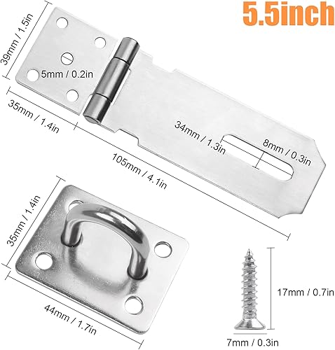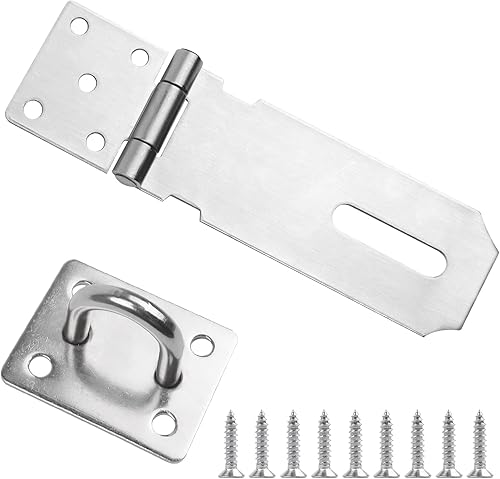 Überfalle Heavy Duty, JatilEr Sicherheitsüberfalle 5.5 Zoll Überfalle Abschließbar mit 9 Groß Rostschutzschrauben Vorhängeschloss Riegel 304 Edelstahl für Vorhängeschloss, Schränke, Tore