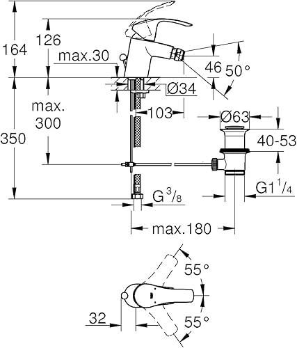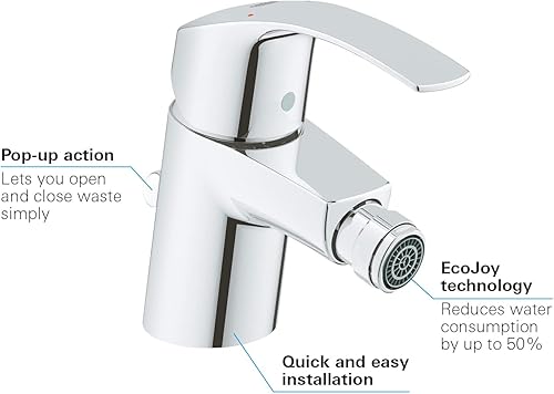 GROHE Eurosmart - Einhand- Bidetarmatur (wassersparend, mit Temperaturbegrenzer, schnelle Befestigung, flexible Anschlussschäuche), chrom, 32929002
