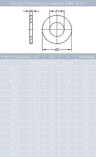 Schlossschrauben M6x60/60 mm mit Sicherungsmuttern & großen Unterlegscheiben M6 aus Edelstahl A2 (20 Stück) | Flachrundschrauben - selbstsichernde Sechskantmuttern - Beilagscheiben von MESAROS®