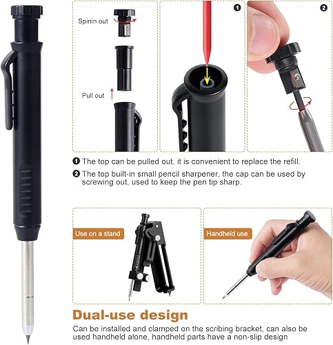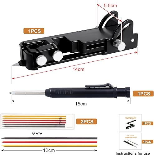 WiMas Multifunktions Anreißwerkzeug Bau Anreißer Markierungswerkzeug Bleistift mit Tiefenbohrung Bleistift, Streichmaß Anreißer Line Maker Messwerkzeug