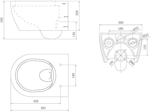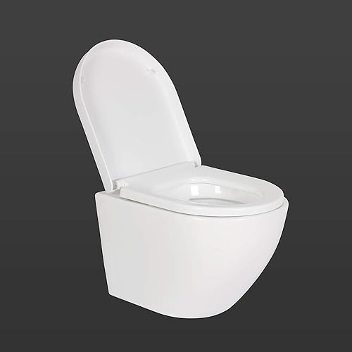 Hänge WC Spülrandlos Wand Spülrandlose Toilette Bidet Funktion Taharet Absenkautomatik Soft Close Sitz Quick Release abnehmbaren WC Sitz kurz und lang, Ausführung:Kurz, Funktion:Mit Bidet Funktion