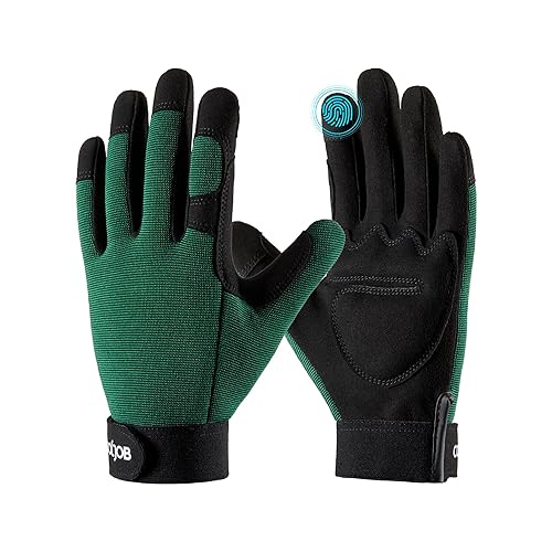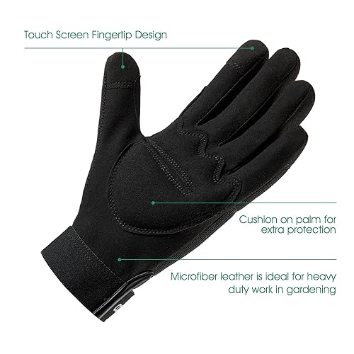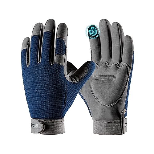 COOLJOB Touchscreen-Gartenhandschuhe, durchstichsichere Arbeitshandschuhe für Rosenschnitt, Gepolsterte Rosenhandschuhe aus Kunstleder mit Klettverschluss, Navy (1 Paar, M)