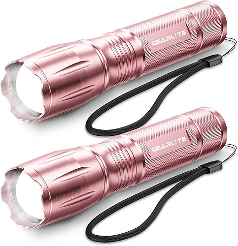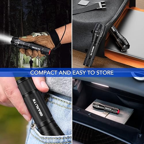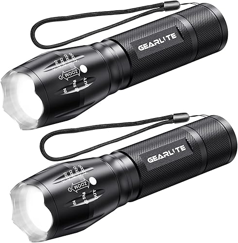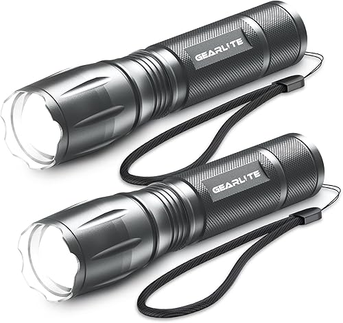 GEARLITE LED Taschenlampe Batteriebetrieben 2 Stücke, 2000 Lumen Taschenlampe LED Extrem Hell mit 5 Modi, IP65 Wasserdicht Taschenlampe Kinder für Camping, Wandern, Outdoor, Notfall