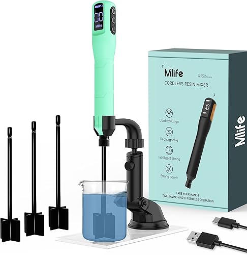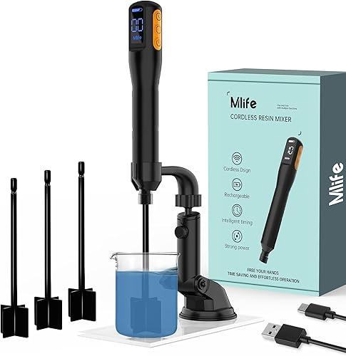 Mlife Upgraded Resin Mixer, Epoxy Resin Electric Stirrer, Paint Mixer & Timed Epoxy Resin Mixer for Epoxy Resin,Silicone Mixing, Resin Molds, DIY Crafts, Epoxy Resin Kit, with Mixer Stand(Black)