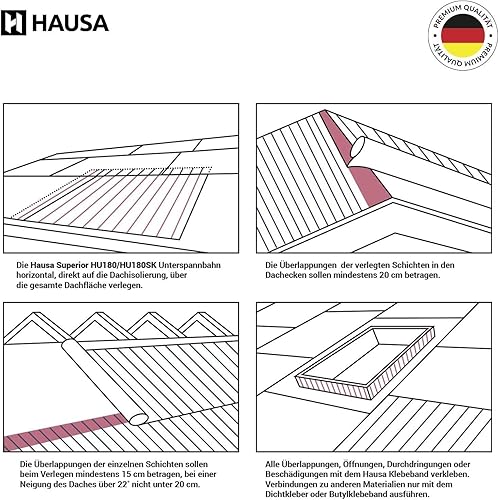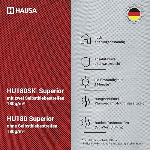 HAUSA Unterspannbahn Dach Superior HU180 180g/m² 37,5m² (1,5mx25m) Dachfolie ohne klebestreifen hochdiffusionsoffene wasserdichte Unterdeckbahn witterungs- alterungsbeständig reißfest Schalungsbahn