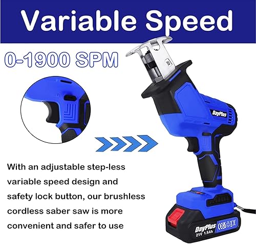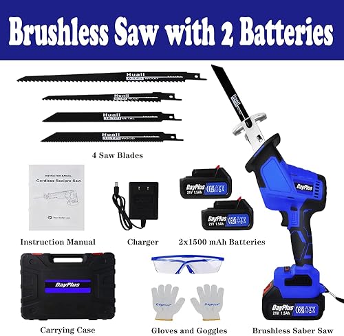 Akku Säbelsäge Bürstenlose Elektrisch Knochensäge Fleischsäge mit 2x1,5Ah Akkus und Schnellladegerät, 1900 SPM Elektrische Handsäge, 4 Blätter Lieferumfang Enthalten Leistungsstarke Motor-Stichsäge