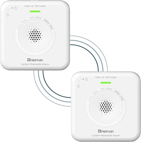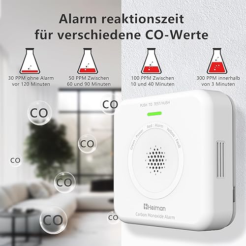 HEIMAN Funkvernetzter CO-Melder, CO Alarm Kohlenmonoxid 10 Jahre Sensor - Batterien austauschbar 85 dB Kohlenmonoxidmelder für Zuhause, tragbar, Batteriebetrieben (1)