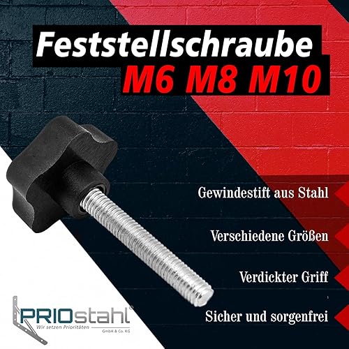 PRIOstahl Feststellschraube Sterngriffschraube Griffschraube Sternmutter - M8 x 60mm 4 Stück Sternkopfschraube Rändelschraube Schraube als Halterung & Fixierung mit Außengewinde aus Stahl