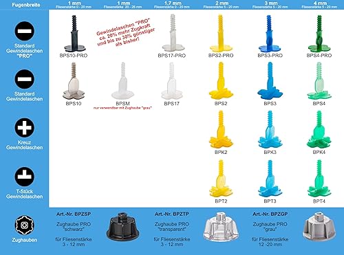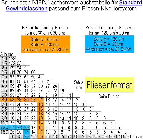 Brunoplast NIVIFIX 250x T-Fuge Gewindelaschen für 2 mm Fugen, Fliesen Nivelliersystem, 2mm Abstandshalter, Fliesenverlegehilfe zum Verlegen von Wand- und Bodenfliesen, Fliesen Werkzeug, Zuglaschen