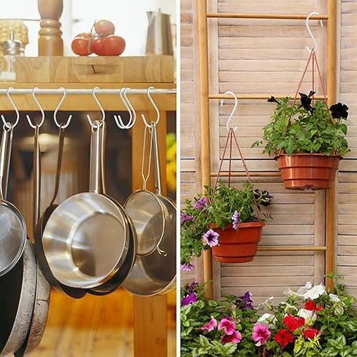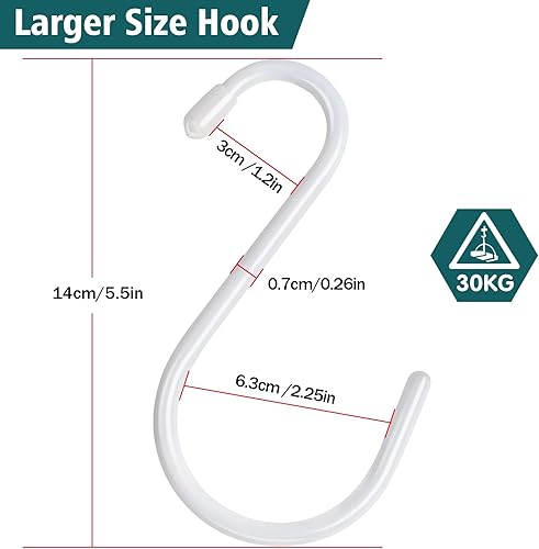 JatilEr 5 Stück S Haken Groß, Weiß Gummiert 14 cm Hacken zum Einhängen, Anti-Rost Metallhaken zum Aufhängen Belastbar bis 30KG S-Form Hängehaken für Kleiderstange Küchenleiste in Schlafzimmer Bad Büro