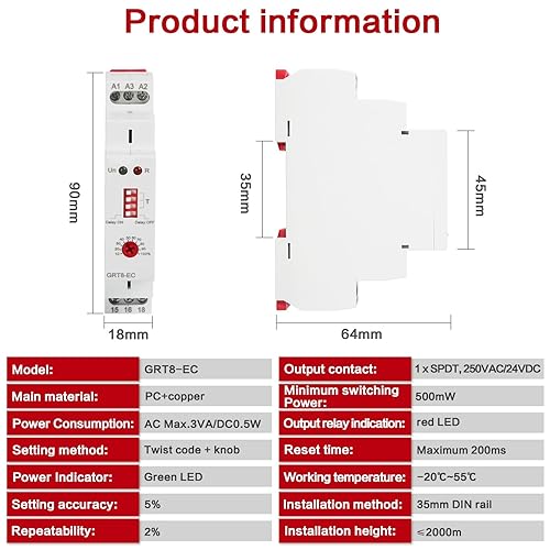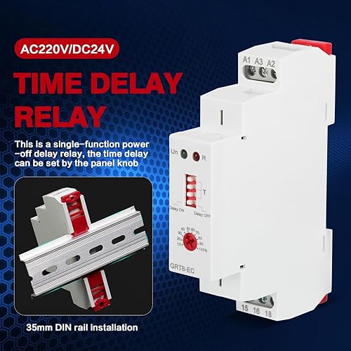 DEWIN Zeitrelais, GRT8-EC Verzögerungszeitrelais Einzelfunktions Zeitrelais Ein-/Aus-Verzögerungsrelais Hutschiene Zeitrelais AC 220V/DC 24V