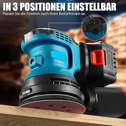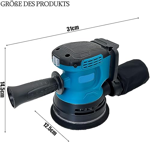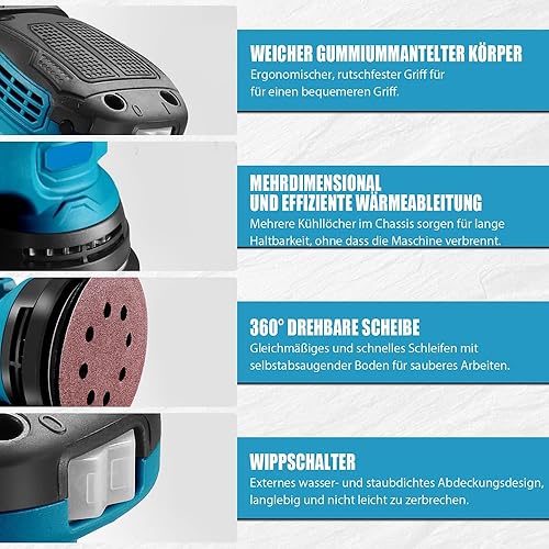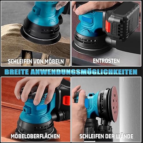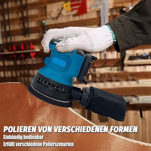 Bürstenloser Akku Exzenterschleifer, Ersetzen für Makita 18V Akku, mit 2 x 5.5AH Akku, 12 Schleifpapierblättern, 3 Leistungsstufe(7500-15000 U/min), Zum Schleifen und Polieren Von Metall/Holz