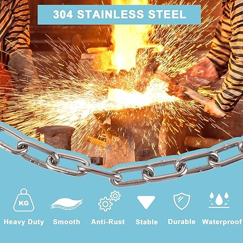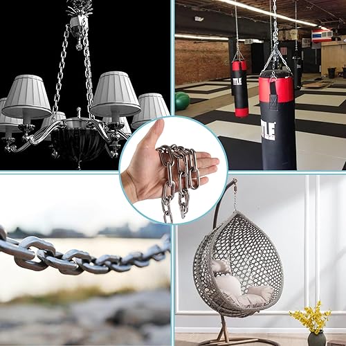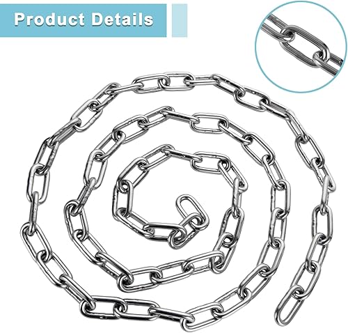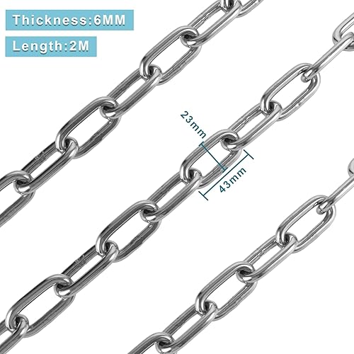 CYEER Edelstahl Kette 6MM, Edelstahlkette Meterware 2M, Stahlkette Starke, Kette Edelstahl, Rundstahlkette Metallkette Gliederkette Hängesessel Kette Boxsack Kette Verlängerungskette für Hängesessel