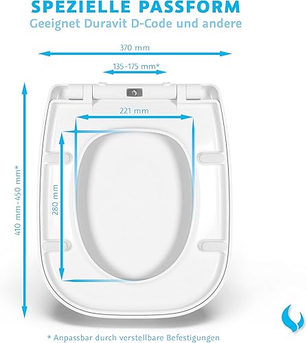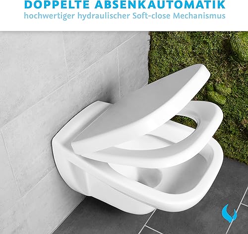 Bullseat® premium Toilettendeckel weiß passend zu Duravit D-Code. Klodeckel mit Absenkautomatik/Softclose und abnehmbar. Antibakterielle Klobrille aus Duroplast und rostfreiem Edelstahl.