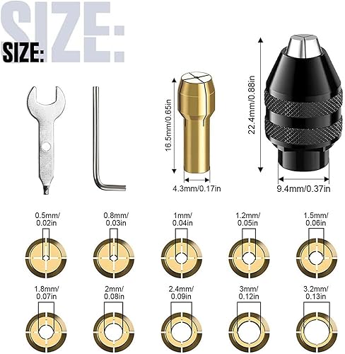 15 Stück Dremel Zubehör, Bohrfutter Spannzangensatz für Dremel,Mini Bohrfutter Adapter kompatibel, 1/32' bis 1/8' Ersatz 4486 Schnellwechsel-Bohrfutter mit Ersatz 4485 Messing-Spannzange Metallmutter