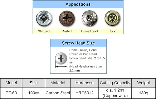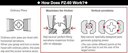 Zange zum Entfernen von Schrauben mit langer Nase und einzigartigen, rutschfesten Backen zum schnellen Herausziehen beschädigter/festsitzender Schrauben. ENGINEER PZ-60 Neji-Saurus, Silber, Φ2~5,5