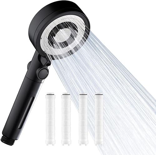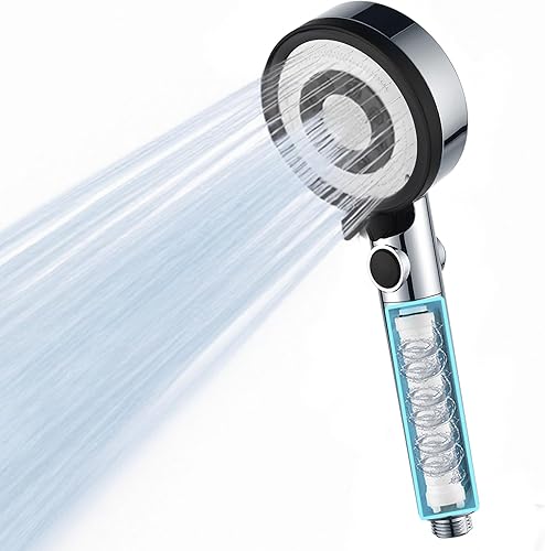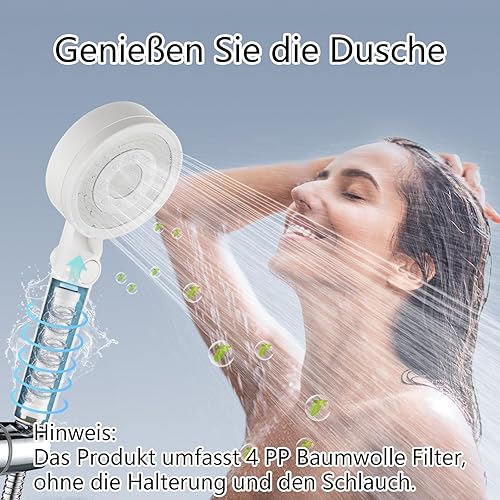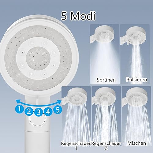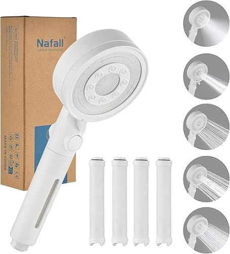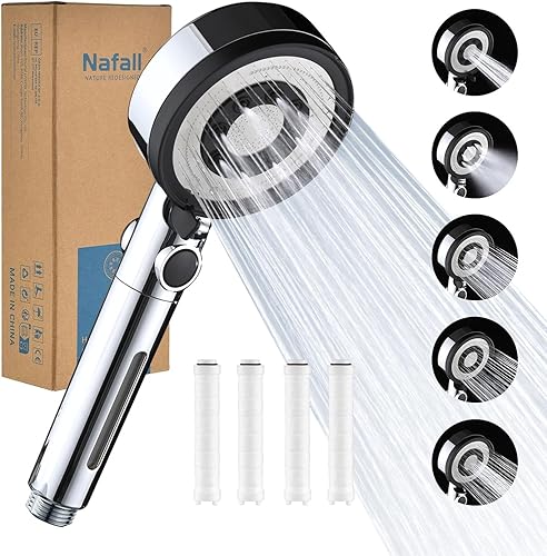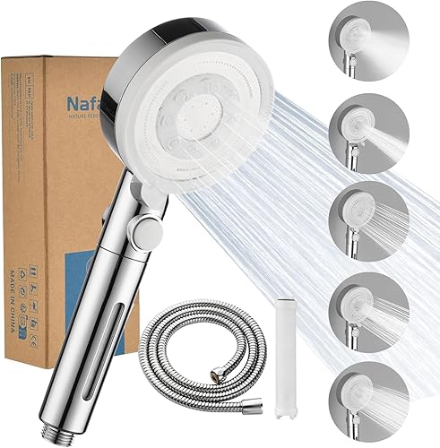 Nafall Duschkopf mit Filter - Handbrause Wassersparend mit 1,5 M Schlauch, Brausekopf Dusche mit 5 Strahlarten und Stoppfunktion, Hochdruck Shower Head, Chrom (Ohne Halter)