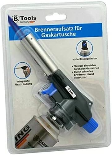 BTools Lötlampe, Lötbrenner, Gasbrenner, Bunsenbrenneraufsatz, Butangaskartusche