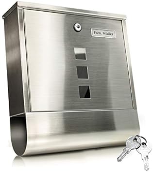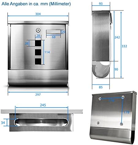TÄGA 2210 Design Briefkasten Edelstahl mit Zeitungsfach I 3 Sichtfenster I Platz für Namensschild I abschließbar, 2 Schlüssel inkl. I einfacher Anbau inkl. Befestigungsmaterial