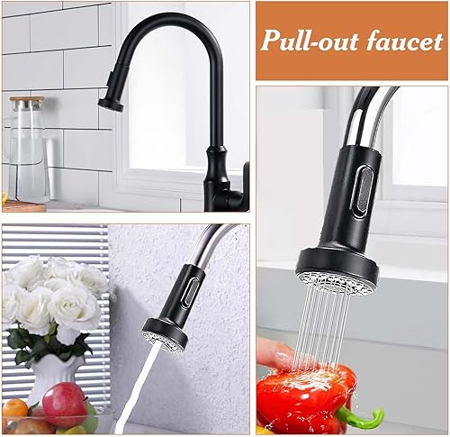 XoeLLe Brausekopf Küchenarmatur, Shower Head, Wasserhahn Aufsatz Küche, Wasserhahn Verlängerung, Wasserhahn Küche 2 Modi Pull out Wasserhahn Küchenarmaturen Spültischarmatur für Küche, Bad (Schwarz)