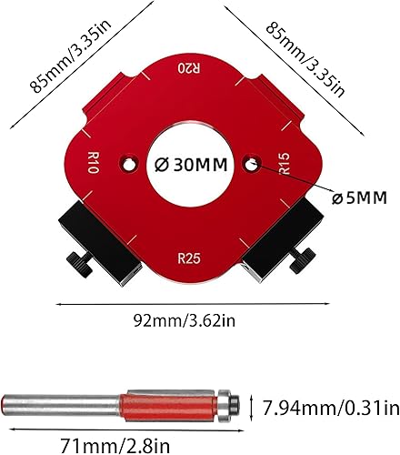 Eckradius-Frässchablonen,R10 R15 R20 R25 Radius Jig Router Schablonen,Corner Radius Routing Templates Frässchablonen,Bündigfräser-Fräser,Für Tische Stühle Bilderrahmen Holzecken