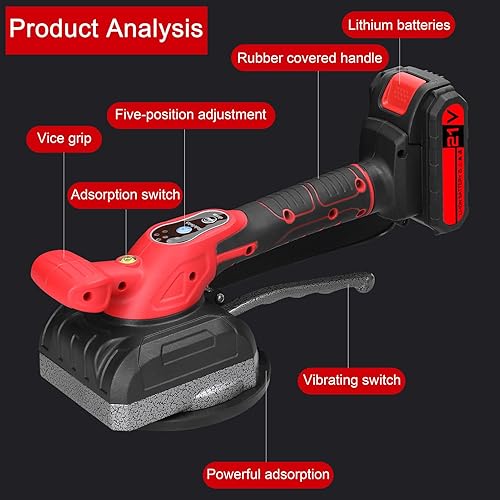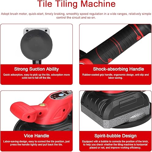 Weytoll Fliesenverlegemaschine, 21V Elektrische Fliesenmaschine, 45 kg Tragfähigkeit, 165MM 5 Gänge einstellbar, Fliesenleger Maschine Elektrische Fliesen Vibrator(2 Batterien) Mit Wasserwaage