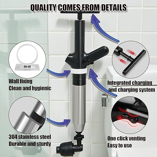Wenbones Abflussreiniger Pumpe mit Luftkompression und Luftdruckanzeige, Pressluft Rohrreiniger mit 4 Saugnäpfen,Toilet Plunger für Reinigen Rohre Waschbecken Badezimmer Küchen (Schwarz)