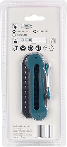 Makita E-12005 Impact Black Bit-Set 10-teilig mit Karabiner, PH, PZ, T Bits 25 mm