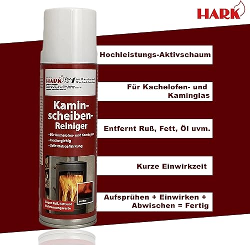HARK Kaminscheibenreiniger Spray Hochleistungs-Aktivschaum entfernt Ruß & Schmutz effektiver Kaminglasreiniger Glas- und Kamin-Ofen-Reiniger - 300 ml